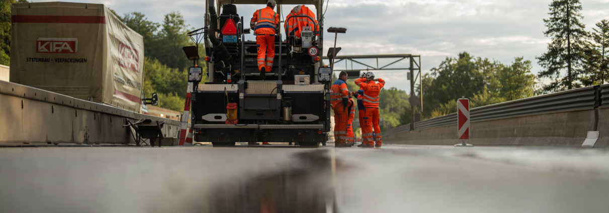En adaptant le mélange de manière ciblée, il est possible d’en adapter les propriétés pour répondre aux exigences spécifiques. Ainsi, le rapport entre le bitume et les additifs comme l’hydroxyde de calcium aura une influence sur l’élasticité et sur la résistance de l’asphalte aux ornières, à l’usure ansi qu’aux intempéries. De même, les granulats sélectionnés impacteront la structure du revêtement et, de fait, le niveau auquel le bruit se transmet. Grâce à sa teneur en vide élevée, le type d’enrobé SDA 8 a un effet phonoabsorbant et il est courant de l’utiliser sur les tronçons dans le voisinage de zones habitées. Des informations complémentaires sur le revêtement routier phonoabsorbant sont disponibles dans l’article « MA8 LA : un nouvel asphalte coulé pour réduire le bruit ».