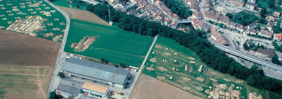 Scavi archeologici meccanici e interventi a sezione aperta sul tracciato della N05 presso Boudry (NE), 1997. (Foto OPAN, Office du patrimoine et de l’archéologie de Neuchâtel)